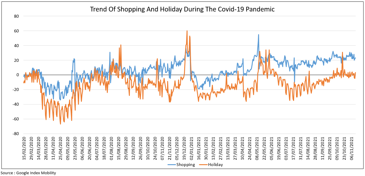 During a pandemic, taking a vacation is not really an option for many people because there are many rules and regulations from the government that must be followed; instead of taking a vacation, people spend more time shopping both online and offline to relieve boredom.