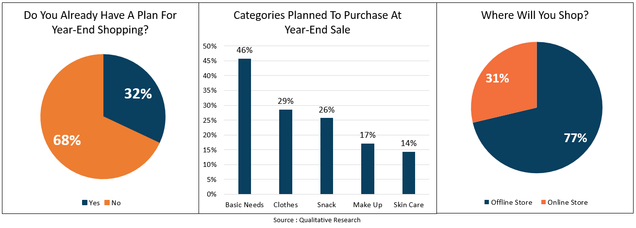 Shopping activities, especially at the end of the year, are the awaited moments for many people due to many discounts. The main category that has been planned to be purchased is basic needs. And a majority of people prefer to shop in-store so that they can see the product directly.