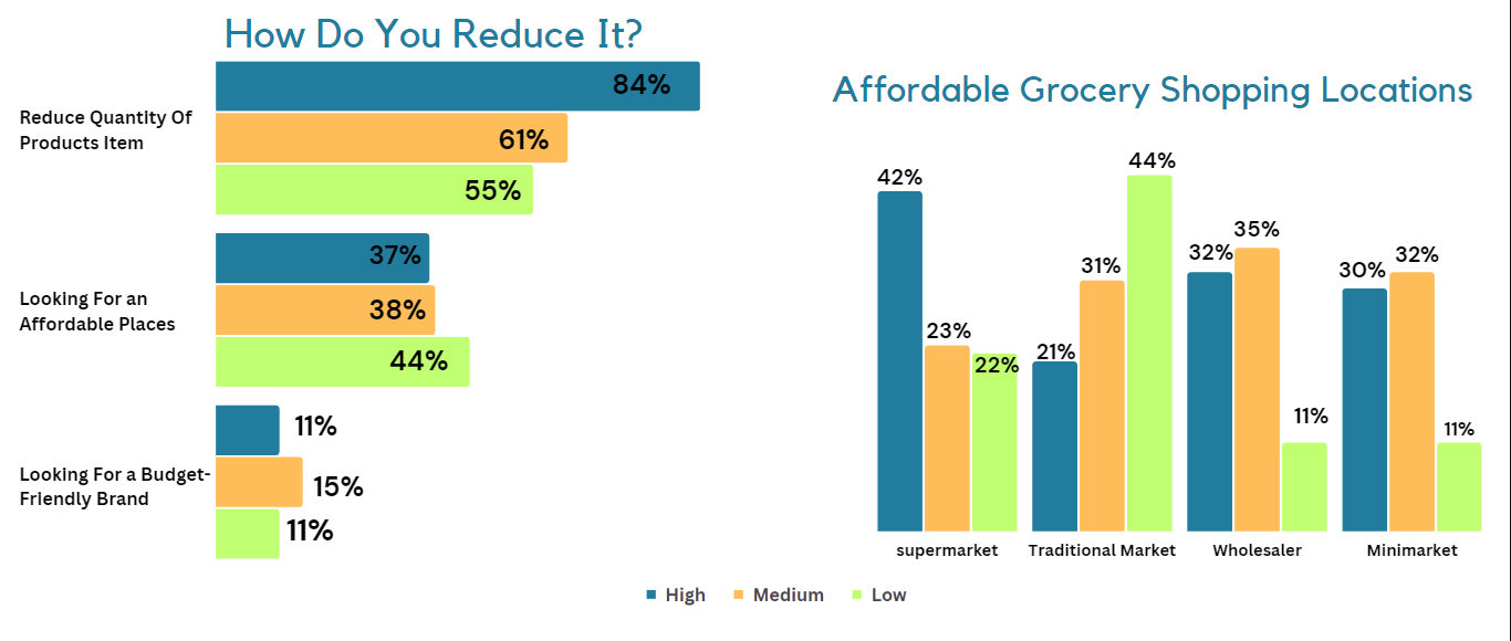 Consumers may take several measures to reduce their essential needs, including reducing the quantity of high-category products purchased. For the medium category, consumers may prefer to seek out budget-friendly brands as a way to reduce their expenses, while those in the low segement may choose to seek out affordable places to purchase their essential items.