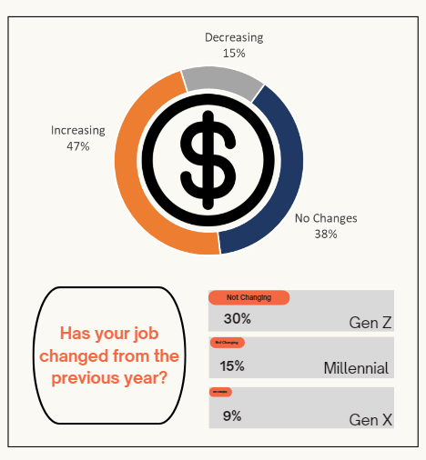 Looking at the income comparison from two years ago, the increase in their income is most noticeable among Gen Z (52%), as many have experienced job transitions over the past two years.