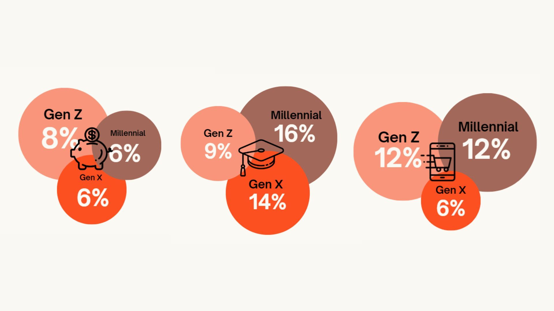 Moreover, we tried to look unique spending priority across the 3 generations. In this case, Gen Z has the highest percentage in the savings category (up to 8%) as a primary need, driven by concerns about their uncertain and long future. Meanwhile Millennials prioritize spending on education the most (up to 16%), primarily for their children's needs, such as tutoring, school fees, and self-development programs. On Gen X, they have the lowest percentage of online shopping (6%) as they have a lower inclination to purchase non-essential items.