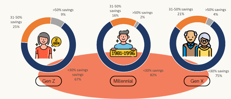 Across all generations, the higher their socioeconomic class, the greater the proportion of their income allocated to savings. Observing on their saving management, those in the upper SES not only save in bank accounts but also invest in physical assets such as gold or property.