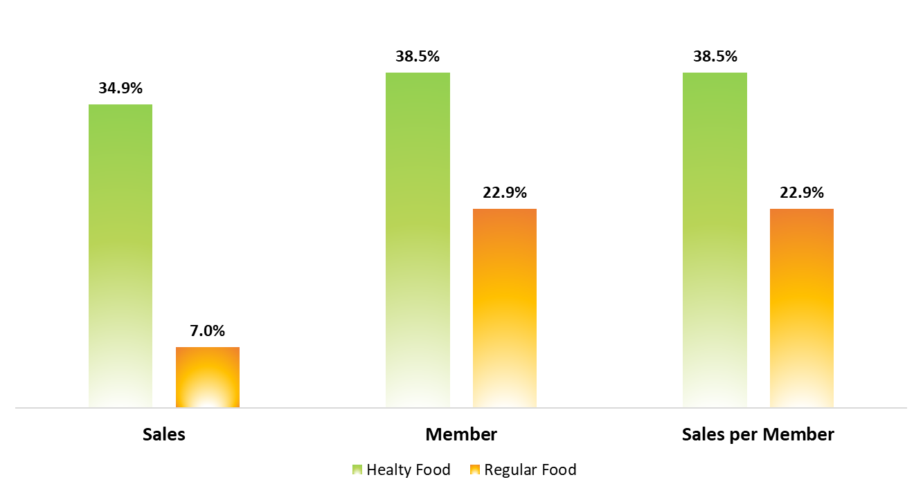 Looking at the healthy food sales, growth, and customer penetration each end year, there has been an increase in sales and customer penetration for healthy products in 2024. This trend reflects growing public enthusiasm for adopting a healthier lifestyle.