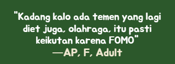 Social media has become the main platform for members to discover information about diets, healthy menus, and physical exercises. Diet trends have also gained traction through social media, fueled by the "Fear of Missing Out" (FOMO) from healthy/diet posts. Influencers such as Ade Rai, Yulia Baltschun, and Dr. Tirta have played significant roles in motivating members to pursue healthy diets.
