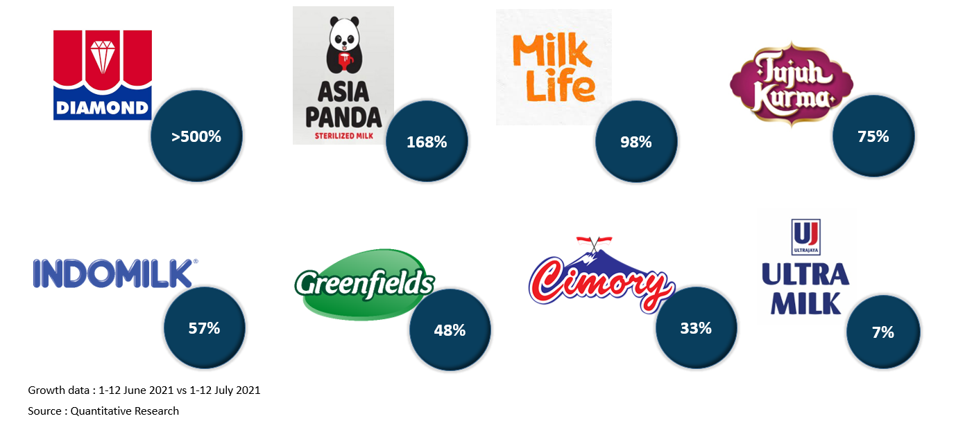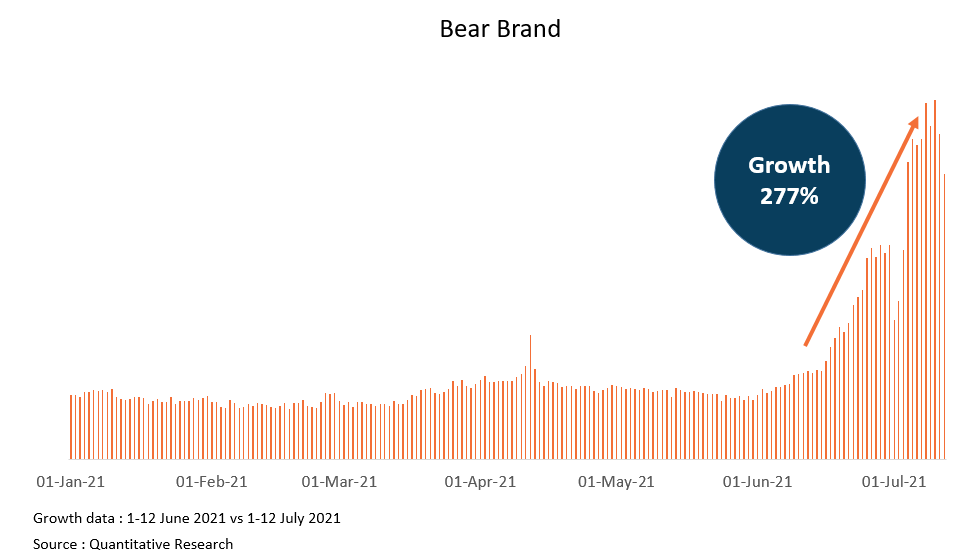 Our data shows that not only Bear Brand milk experienced significant sales growth when the emergency PPKM was implemented in July, several other liquid milk brands also experienced positive growth in minimarkets. Even our data shows that Diamond milk has higher growth than Bear Brand milk.