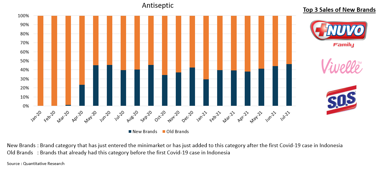 Besides masks, antiseptic products such as hand sanitizers are also essential items that must be carried wherever we travel this day. Several new brands in the antiseptic category after entering the minimarket channel have contributed almost 50% of antiseptic sales.