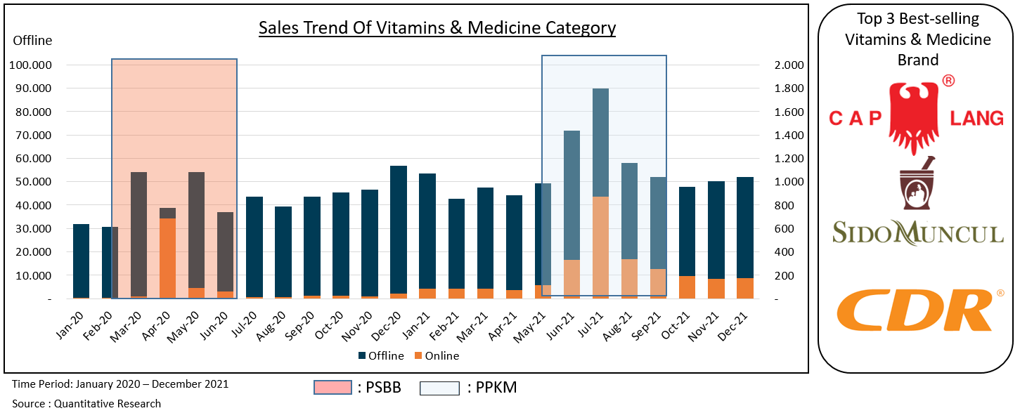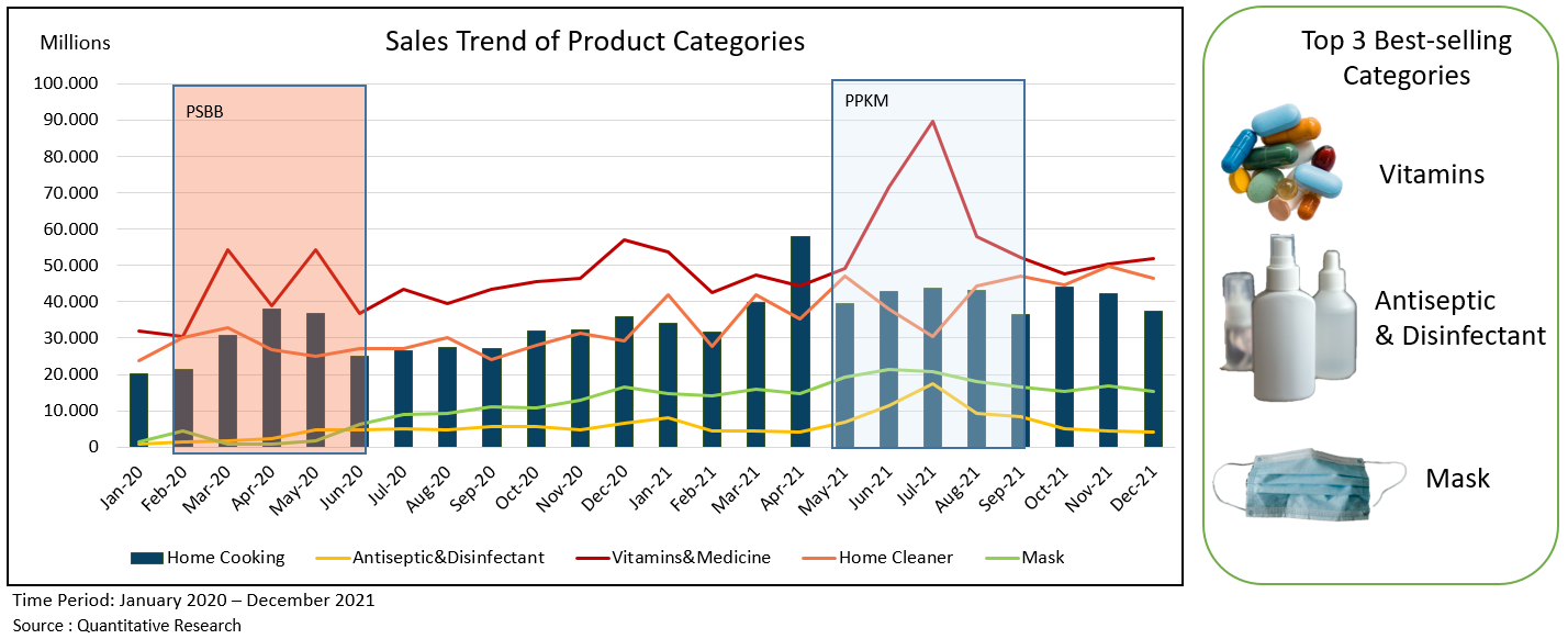 If we look into the minimarket transaction data when PSBB & PPKM is implemented, a significant increase in sales was experienced in the category of vitamins, antiseptics, and masks. And that brings us to the conclusion that when the Covid-19 cases increase, the public will start to tighten protection, both from the outside and within. When it comes to physical protection, normally, they will use the double mask and maintain cleanliness with antiseptic products such as hand sanitizer. And for protection from within, they will maintain their immunity by consuming vitamins regularly.