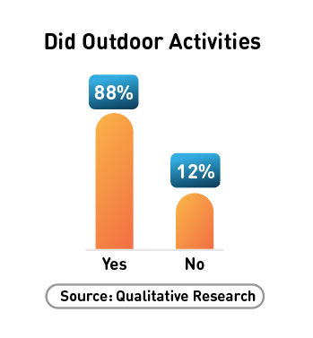 In recent time, almost 88% of people already doing outdoor activities due to their needs and necessities, their concerns of covid-19 situation was reduced. mostly people are going outside for working and shopping of daily needs. People now are be craving to do out of home activities. They are bored at homes. Many say their reasons are focus about their income to support the family needs.