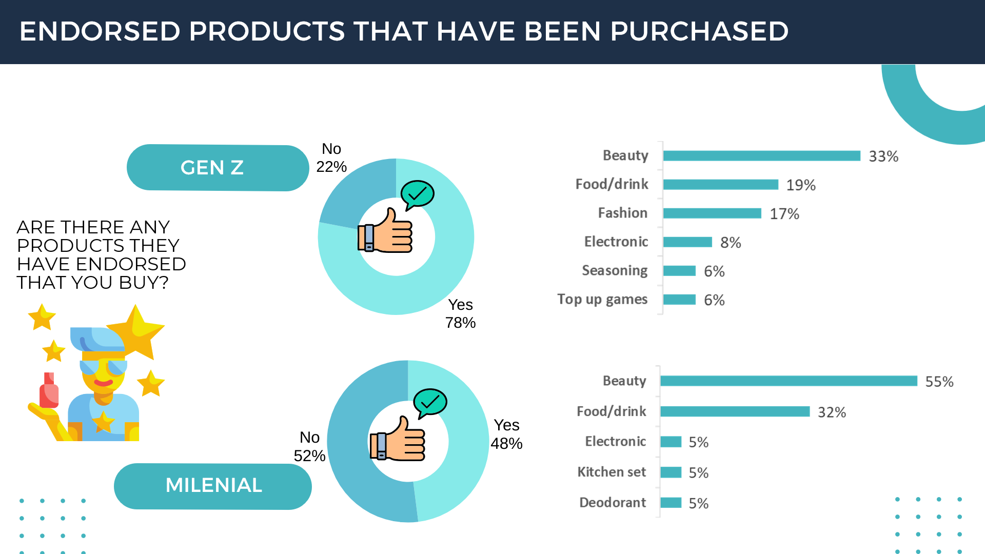 Endorsement from influencers is a form of support or promotion of a product or brand carried out by an influencer through social media platforms or other communication channels. An influencer is an individual who holds significant influence within a community or among their followers, especially on social media. In this article, we will explore the impact of social media influencers on consumer purchasing decisions, and we will also look at the differences in spending habits of Gen Z and Millennials. PT Global Loyalty Indonesia conducted a survey of 100 respondents to observe differences in the behavior of Generation Z and Millennials.