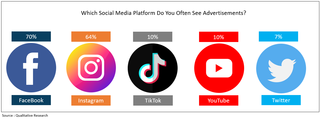 Social media enables communication not only for one's personal life but also for business life. Nowadays, social media has become a must-have tool in the business world to spread information, place advertisements, and reach the largest audience. As an example today, we can see that people rarely read newspapers to get information or barely look into newspapers for advertisements. Instead, all the ads today are posted online and can be seen through social media platforms, such as Facebook, Instagram, & Tiktok, which are the most often seen ads by respondents. In addition, social media today can also influence consumers' purchase decisions through reviews and advertising.