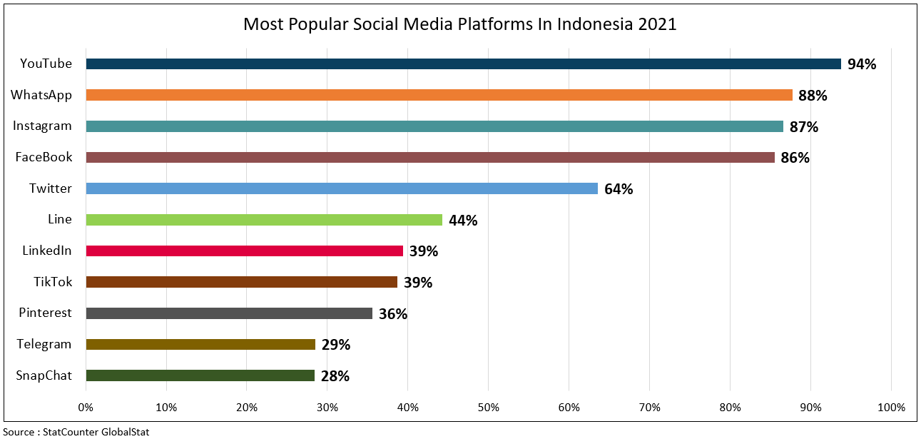 Furthermore, in 2021, the most popular social media platforms are Youtube, Whatsapp, Instagram, Facebook, & Twitter.